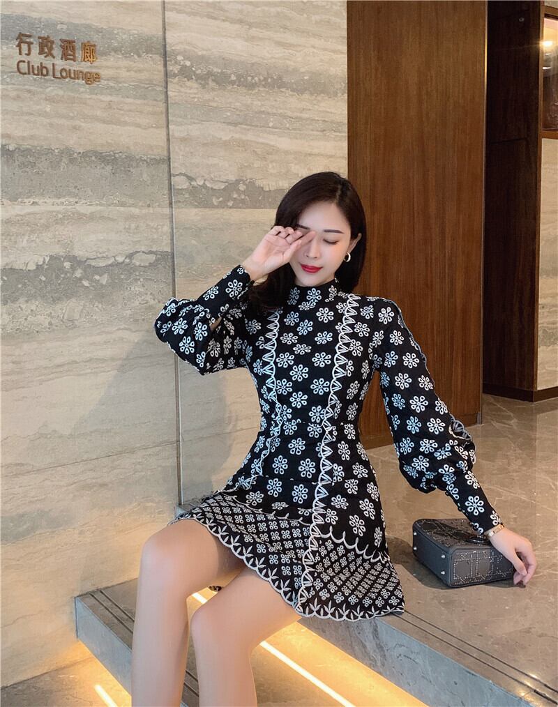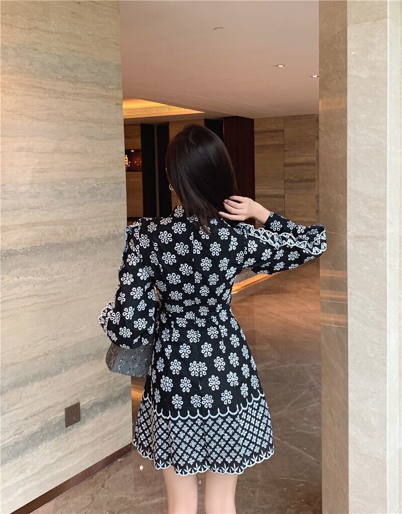 【新作】【送料無料】 SMTHMA2020秋の刺繡フラワードレスOネックランタンスリーブウエストランウェイドレスVestidos 刺繍 オータム 秋物 フラワーデザイン AL Feminine278755359063 | Feminine
