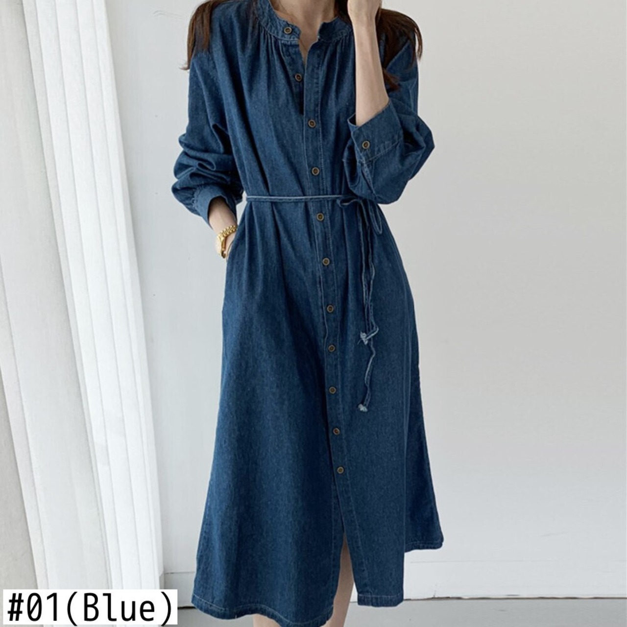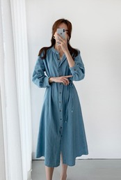 【新作】【送料無料】 SMTHMA2020秋のデニムドレス女性長袖シングルブレストタイアップVestidoワークドレス ロング オータム 秋物 AL Feminine218124513875 | Feminine