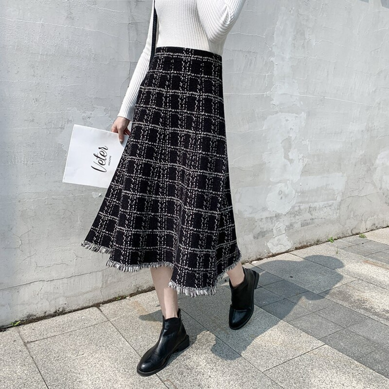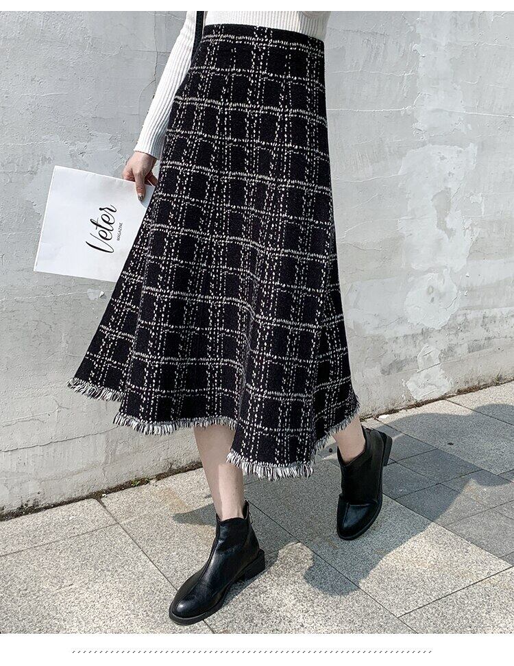 【新作】【送料無料】 SMTHMA2020冬の暖かいニットの女性ミディテルスカートウエスト太いAラインチェック柄のセーターファルダス ウィンター 冬物 AL Feminine294199496135 | Feminine