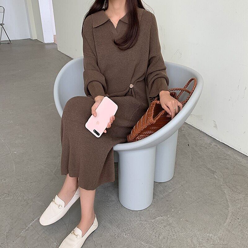 【新作】【送料無料】 SMTHMAフルスリーブルーズニットドレス2020Winter Thick Women Features Waist Long Sweater Vestidos ロング ウィンター 冬物 AL Feminine274286885511 | Feminine