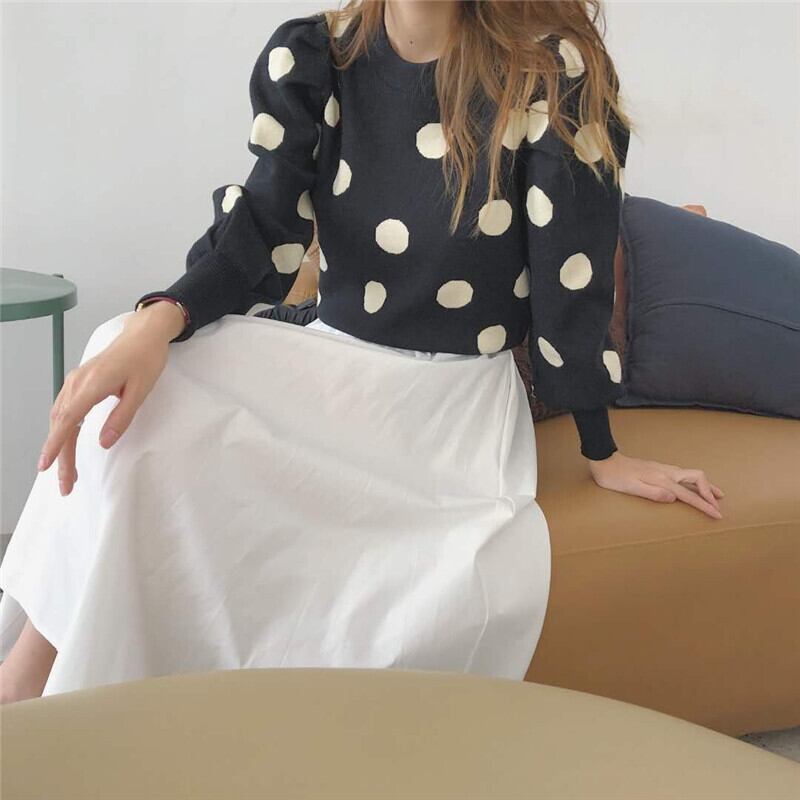 【新作】【送料無料】 SMTHMA2020秋冬女性パフスリーブドットセータープルオーバーニットヴィンテージジャンパー オータム 秋物 ウィンター 冬物 ビンテージ AL Feminine264497441655 | Feminine
