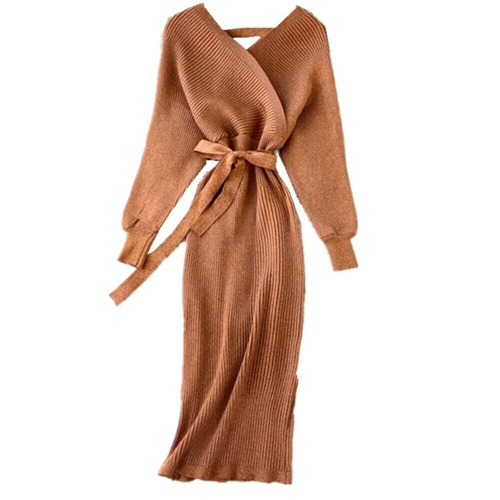 【新作】【送料無料】 SMTHMA AutmnWinterブライトシルクニットセータードレス女性バットスリーブセクシーVネックウエストボディコンVestido ウィンター 冬物 AL Feminine217187396315 | Feminine