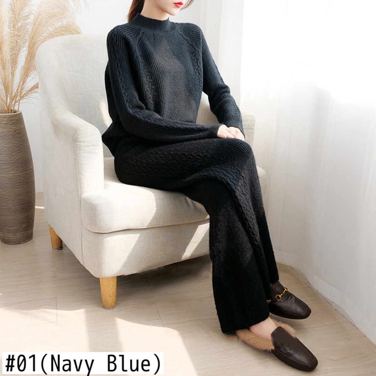 【新作】【送料無料】 秋冬暖かいツーピースセット女性ニット長袖プルオーバーセーター伸縮性ウエストワイドレッグパンツスーツ ロング エラスティック オータム 秋物 ウィンター 冬物 ワイドパンツ AL Feminine235155264096 | Feminine