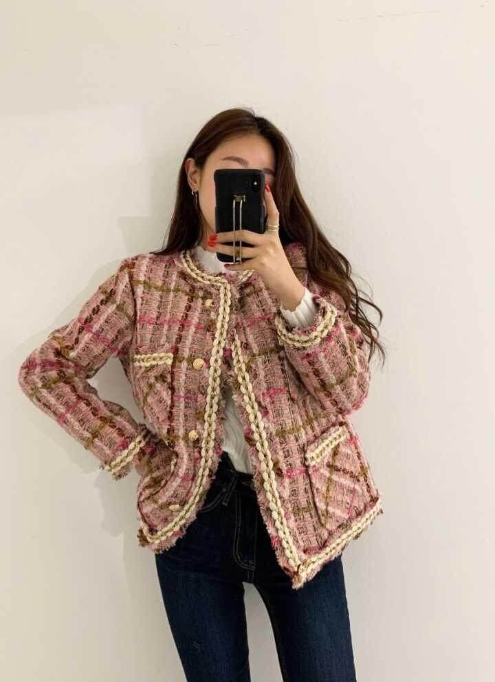 【新作】【送料無料】 SMTHMAヴィンテージパリッドツイードジャケットレディースボタンOネック長袖秋冬コートボンバー原宿2020 ロング かわいい オータム 秋物 ウィンター 冬物 ビンテージ AL Feminine263941529313 | Feminine