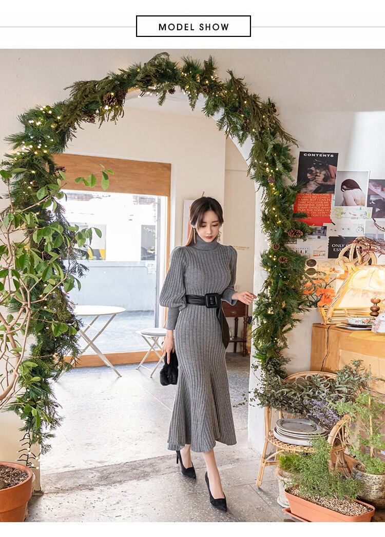 【新作】【送料無料】 SMTHMA秋冬厚手のマーメイドセータードレスニットランサーンスリーブスリムミドル丈シックなVestidos オータム 秋物 ウィンター 冬物 AL Feminine277881925135 | Feminine