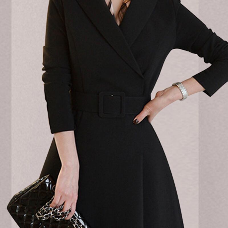 【新作】【送料無料】 SMTHMAレディース秋冬ノッチネックプリーツドレスOLワークウェアビジネスブラックベスティドスフリーベルト オータム 秋物 ウィンター 冬物 ハーネス AL Feminine224962088575 | Feminine