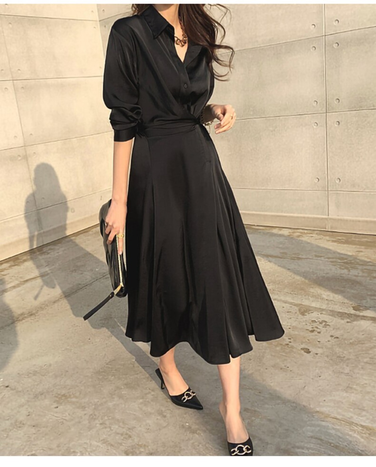 【新作】【送料無料】 SMTHMA秋の女性の長袖シャツドレスヴィンテージセクシーなパーティーナイトソリッドVestidoDa Festa ロング オータム 秋物 ソリッドカラー ビンテージ AL Feminine283143994385 | Feminine