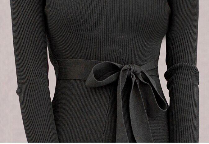 【新作】【送料無料】 SMTHMA秋冬長袖セータードレス女性OLベルト付きソリッドスリムVestidoDa Festa ロング オータム 秋物 ウィンター 冬物 ハーネス ソリッドカラー AL Feminine290014971 | Feminine