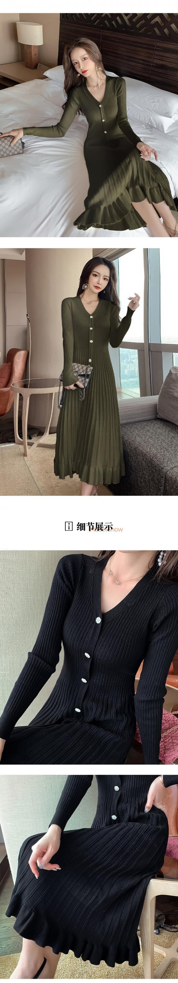【新作】【送料無料】 SMTHMA秋冬ニットセーターロングドレス女性VネックスリムボディコンローブオフィスレディVestidoDa Festa オータム 秋物 ウィンター 冬物 会社 学校 通勤や通学にも AL Feminine210638300127