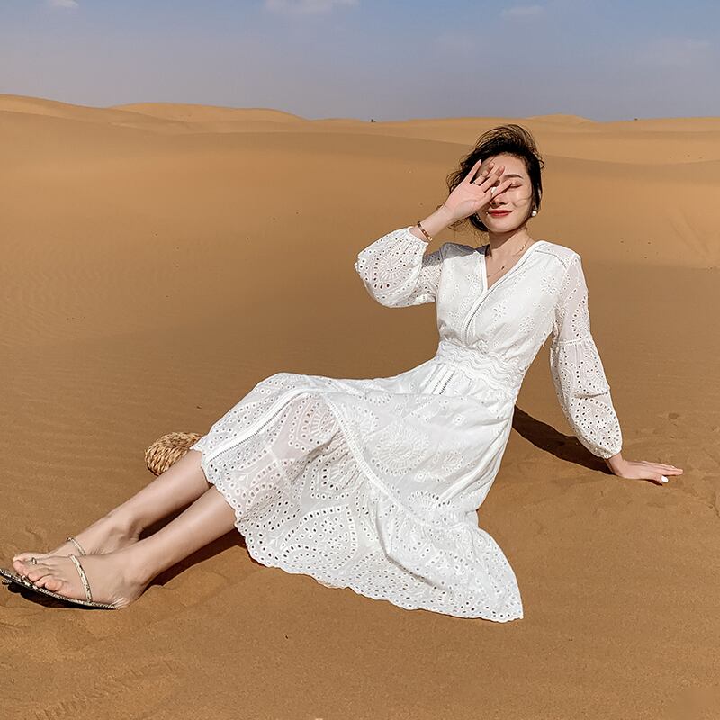【新作】【送料無料】 SMTHMA秋のヴィンテージ女性フルスリーブホワイトレースロングドレス職業休日服VestidoDa Festa オータム 秋物 ビンテージ AL Feminine253302172817 | Feminine