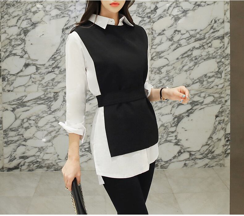 【新作】【送料無料】 SMTHMA2020ヴィンテージツーピースセットルーズロングスリーブレディースブラウスベルト付きレディースベストレディース 長袖 ハーネス ビンテージ AL Feminine293821715906 | Feminine