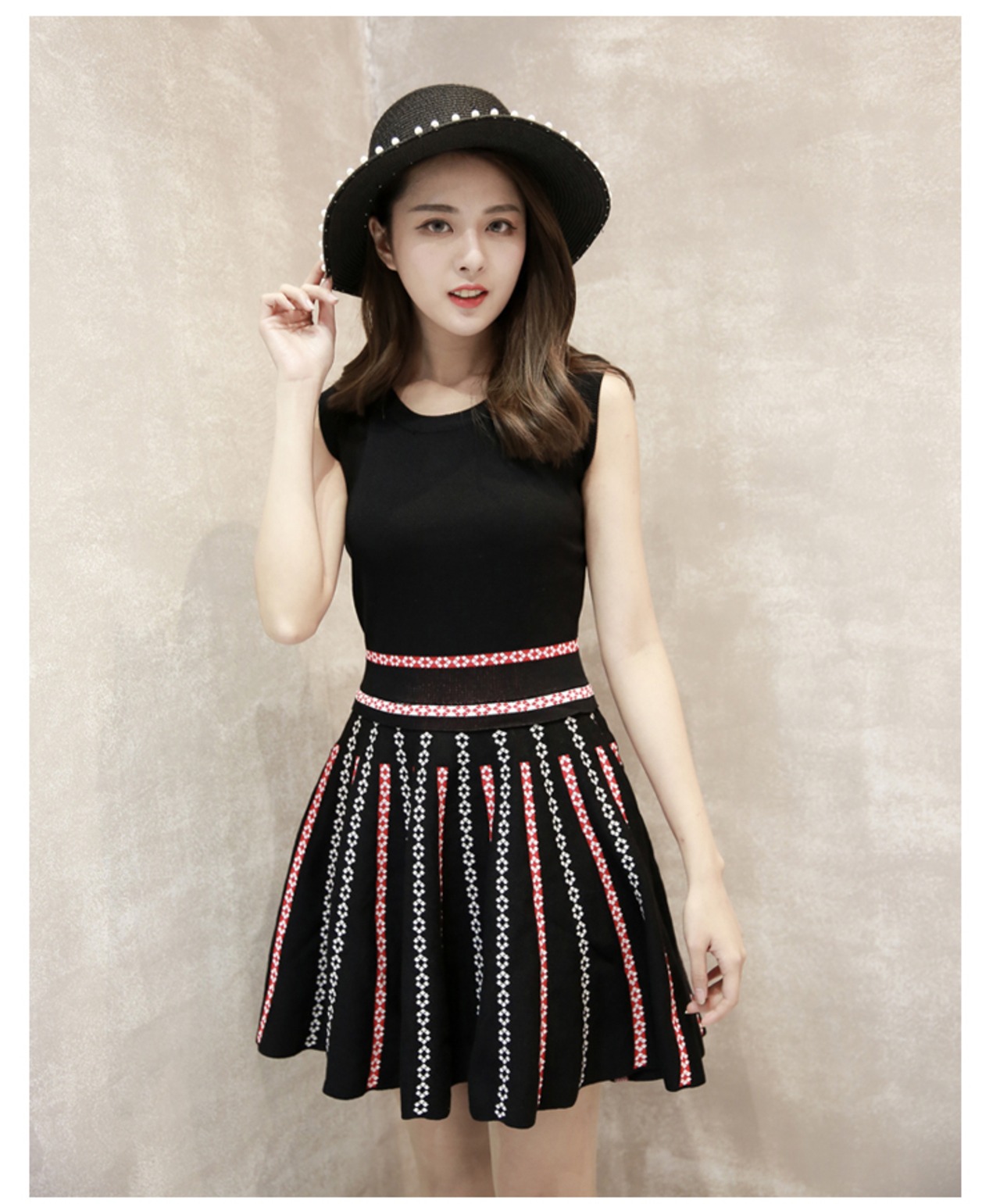 【新作】【送料無料】 SMTHMA2020春冬ストライプレディースノースリーブスリム幾何学的刺繡ニットドレス 刺繍 スプリング 春物 ウィンター 冬物 AL Feminine212940166904