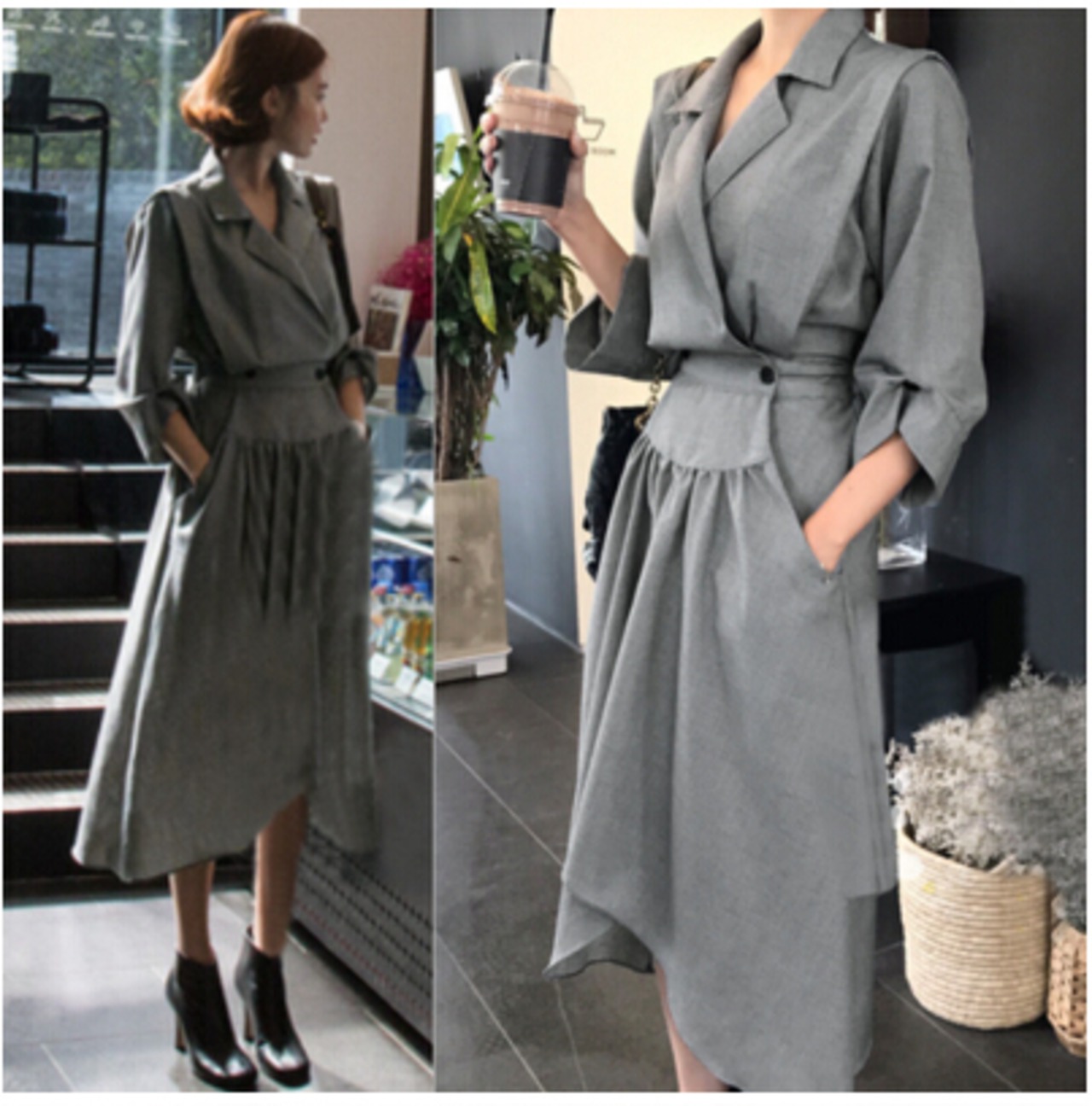 【新作】【送料無料】 SMTHMA HIGH 春のドレス女性の滑走路スーツの襟ハイウエスト不規則なグリッドドレス ハイウェスト スプリング 春物 AL Feminine21217356324 | Feminine
