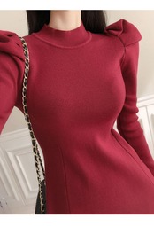 【新作】【送料無料】 SMTHMAパフスリーブOLセータードレスレディースニット秋冬スリムAラインベーシックVestidoDa Festa オータム 秋物 ウィンター 冬物 AL Feminine225689865345 | Feminine
