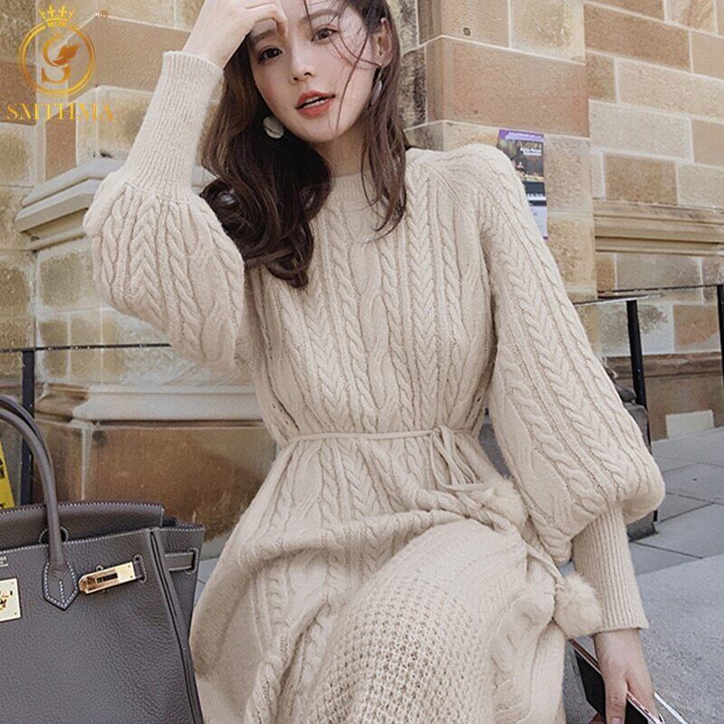【新作】【送料無料】 SMTHMA冬の女性ヴィンテージランタンスリーブニットセータードレスロングルーズマキシオーバーサイズVestidoDa Festa ウィンター 冬物 ビンテージ AL Feminine250662962850 | Feminine