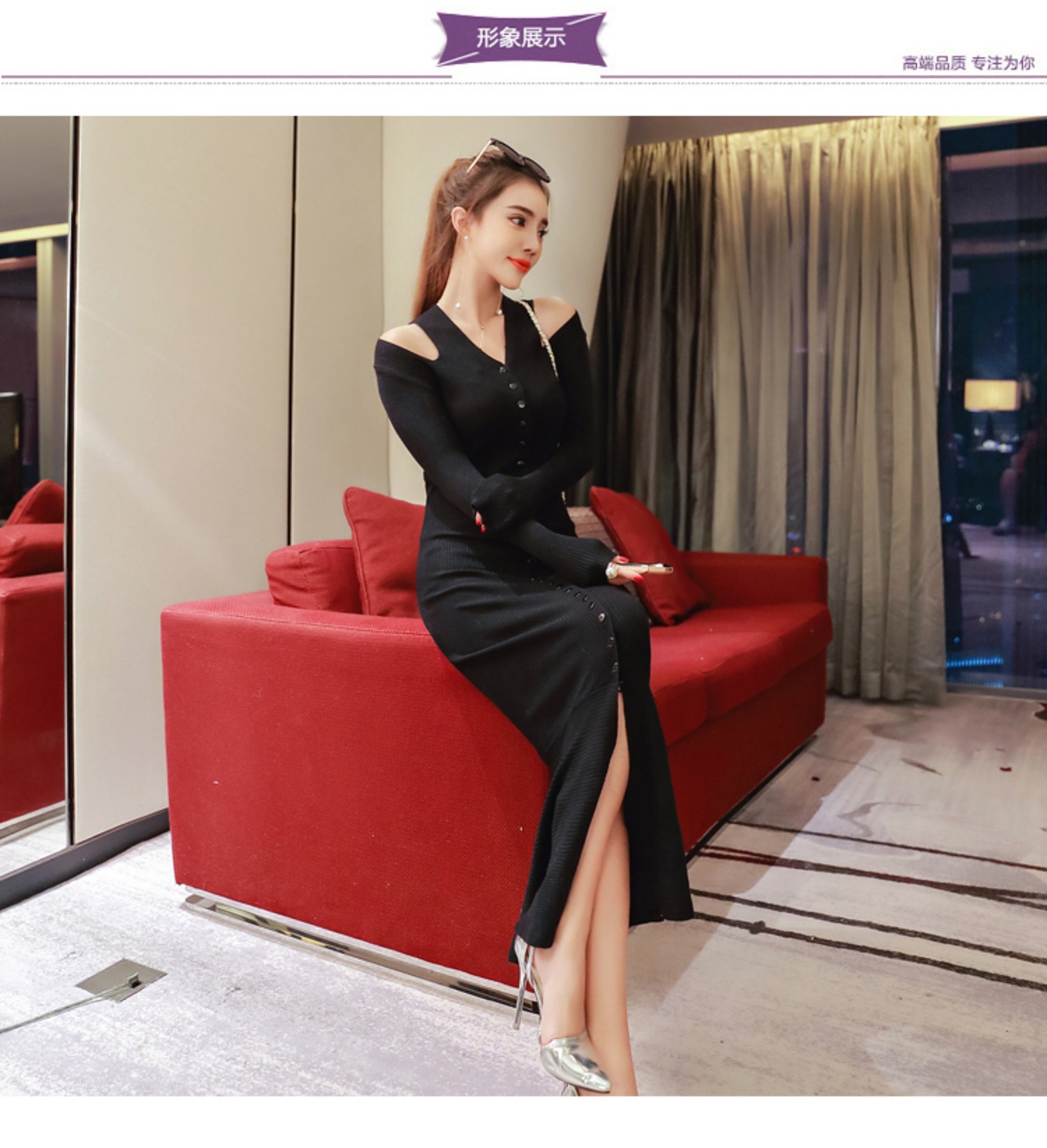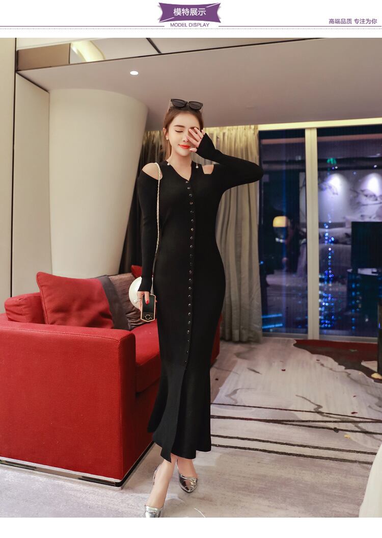【新作】【送料無料】 SMTHMA女性セクシーVネックマーメイドドレス秋冬シングルブレストニットフルスリーブロングVestidos オータム 秋物 ウィンター 冬物 AL Feminine283476956232 | Feminine