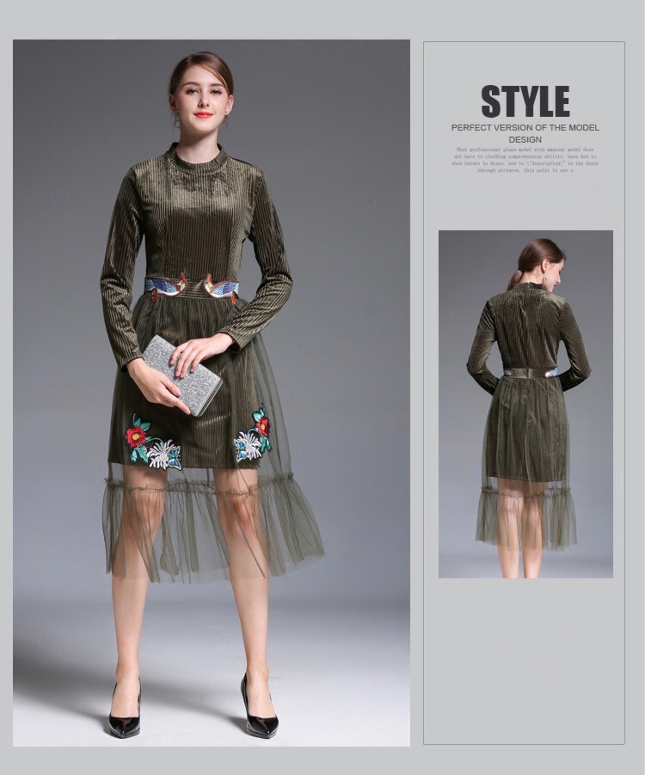 【新作】【送料無料】 SMTHMA HIGH QUALITY est2020ランウェイドレスレディースゴールドベルベット刺繡鳥ガーゼパッチワークドレス 刺繍 AL Feminine240828211516 | Feminine