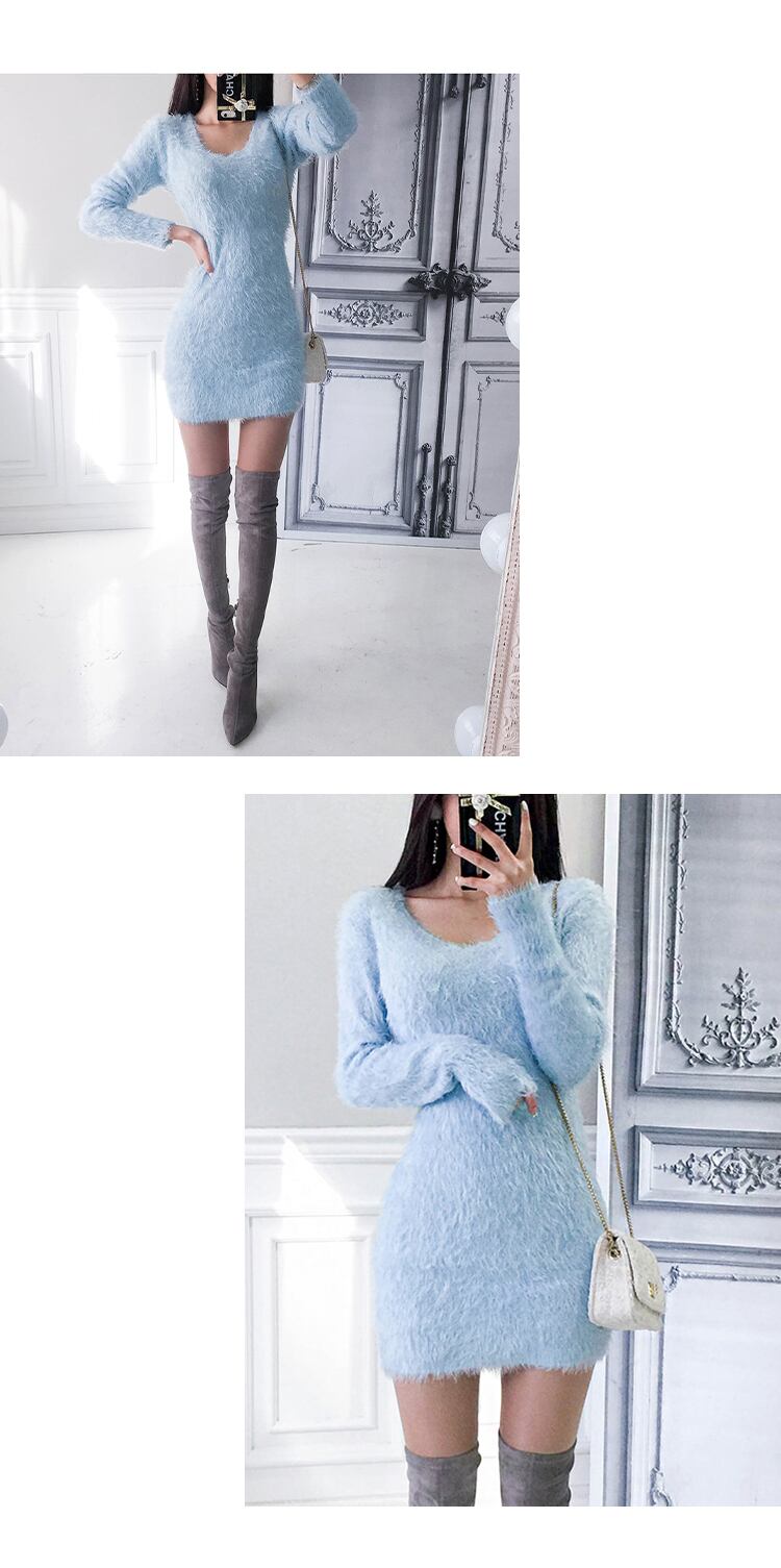 【新作】【送料無料】 SMTHMA秋冬レディースVネックニットソフトモヘアセータードレスシックなボディコンオフィスVestidos オータム 秋物 ウィンター 冬物 会社 学校 通勤や通学にも AL Feminine228604594610 | Feminine
