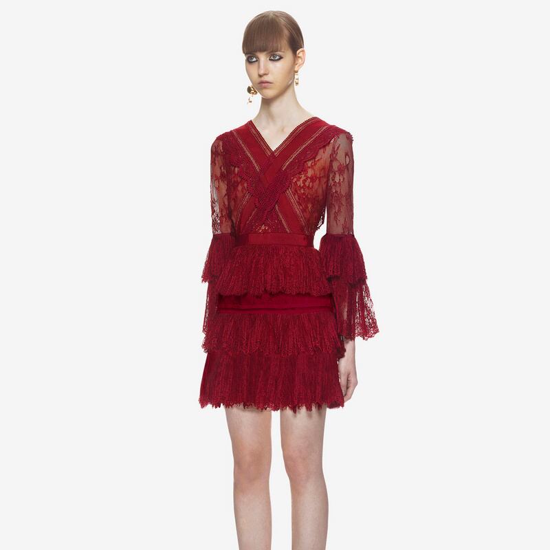 【新作】【送料無料】 SMTHMA HIGH 春の終わりのカスタムセルフポートレートランウェイドレスレースくり抜いたセクシーなハイウエストパッチワークレースドレス ハイウェスト スプリング 春物 AL Feminine27095149456