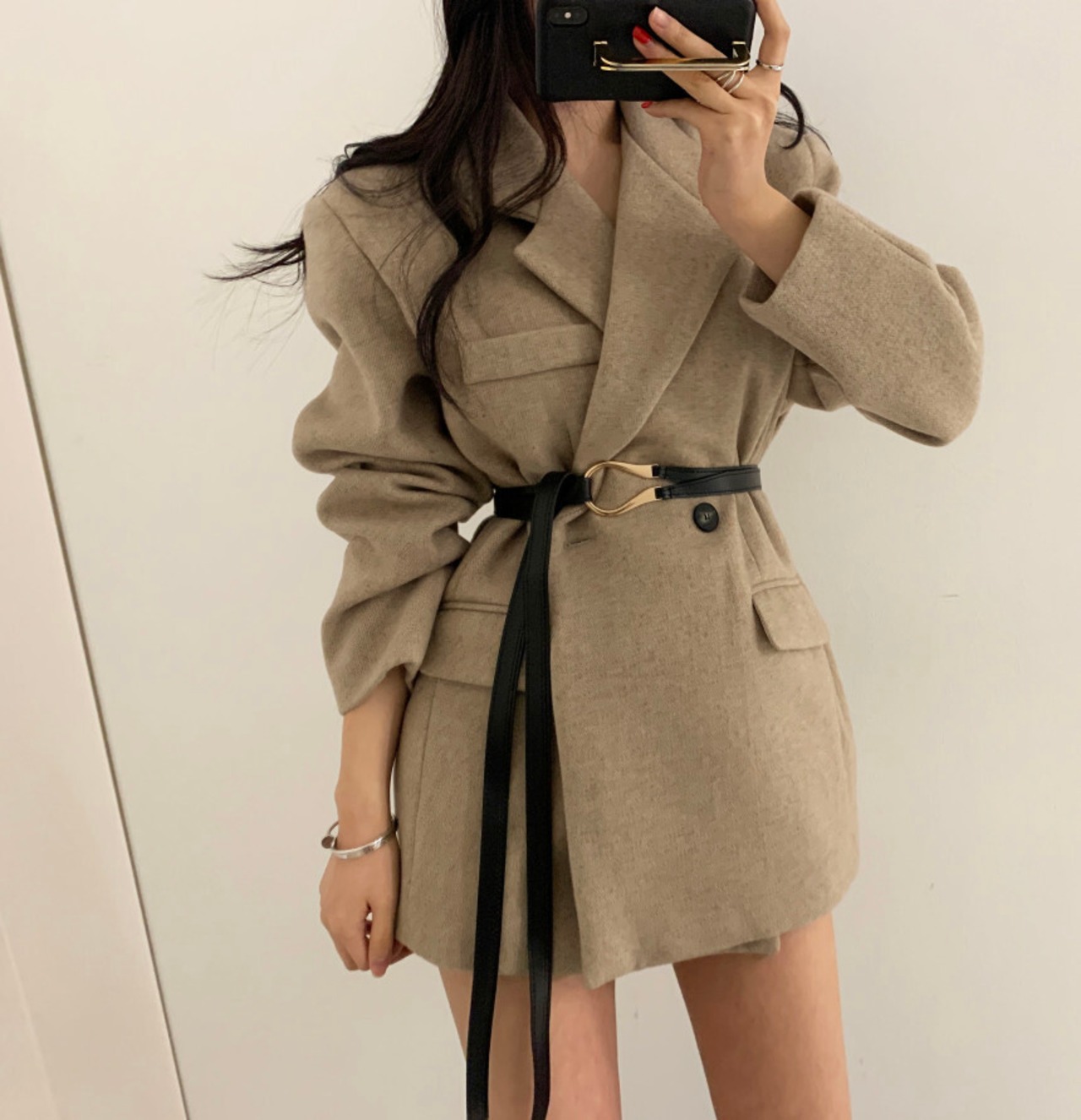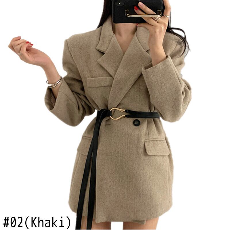 【新作】【送料無料】 SMTHMAノッチカラーベルト付き女性冬の厚手の暖かいダブルボタンスーツジャケットウールのアウタートップス ウィンター 冬物 ハーネス AL Feminine267466605095 | Feminine
