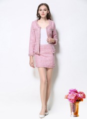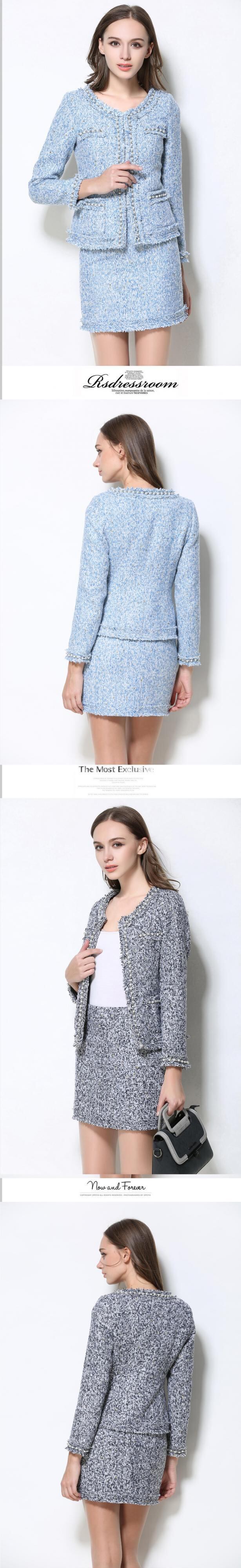 【新作】【送料無料】 SMTHMAHIGHランウェイウィンターロングスリーブビーズツイードジャケットコート+レディースツーピーススカートセットS-XXL 長袖 冬物 AL Feminine26101896894 | Feminine