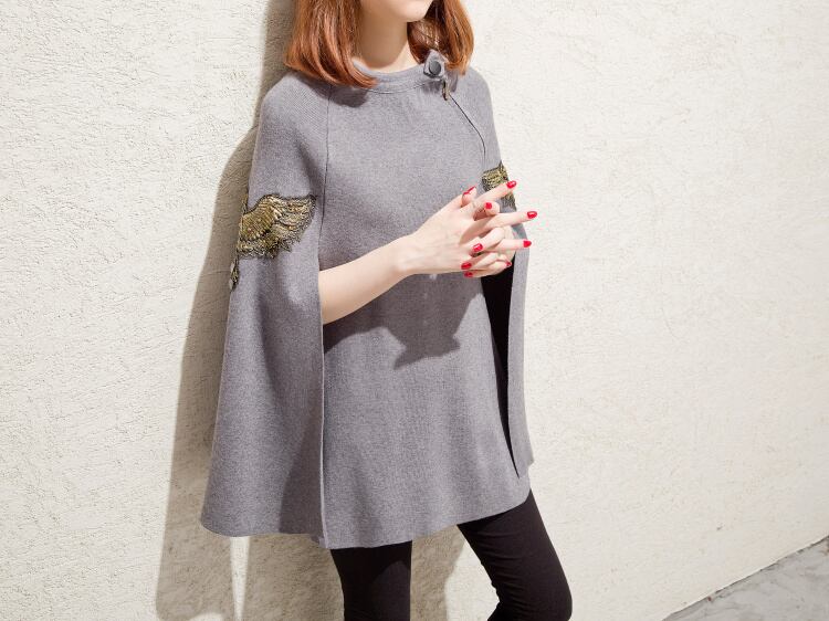 【新作】【送料無料】 SMTHMA秋冬滑走路ブラックグレー刺繡ビーズポンチョとケーププルオーバーニットウールセーター女性クリスマスコート レッド 刺繍 オータム 秋物 ウィンター 冬物 AL Feminine230065728289