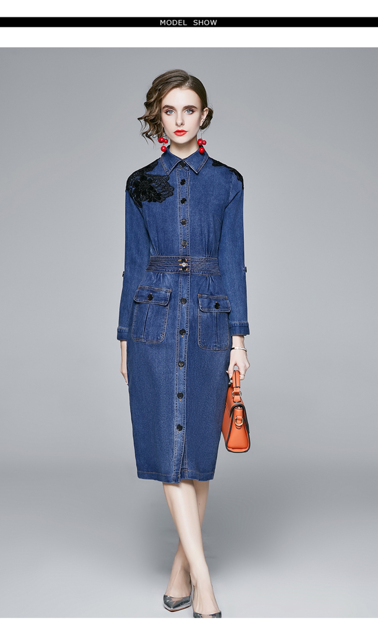 【新作】【送料無料】 女性秋冬ヴィンテージデニムドレス長袖滑走路シングルブレストブルーVestidos ロング オータム 秋物 ウィンター 冬物 ビンテージ AL Feminine267822700230 | Feminine