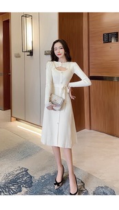 【新作】【送料無料】 女性の秋と冬のシングルブレストレースアップニットセータードレスシックなセクシーなくり抜かれたVestidos オータム 秋物 ウィンター 冬物 AL Feminine248419999091 | Feminine