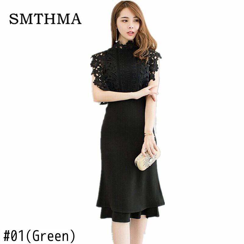 【新作】【送料無料】 SMTHMA2019到着セルフポートレートランウェイドレス女性ノースリーブレースパッチワークブラックサマードレス 夏物 AL Feminine214241388384 | Feminine