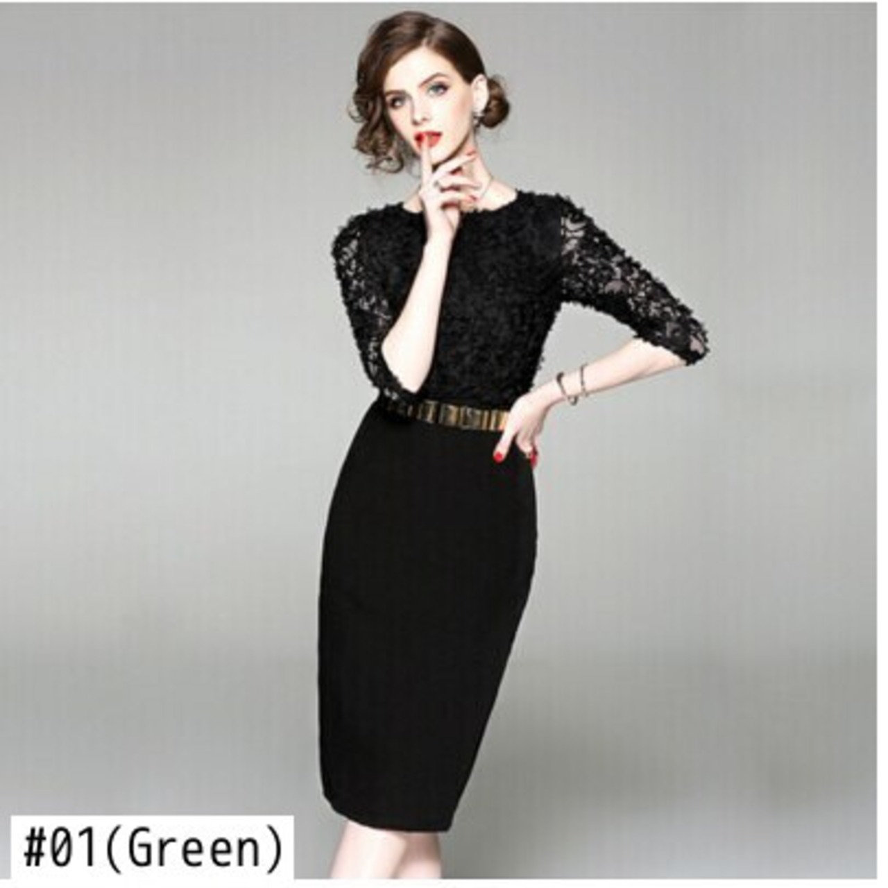 【新作】【送料無料】 SMTHMA Professional Women Work Business OfficeClicラウンドネックグリーンブラックボディコンドレス送信無料ベルト ハーネス Oネック 会社 学校 通勤や通学にも AL Feminine239898587716 | Feminine