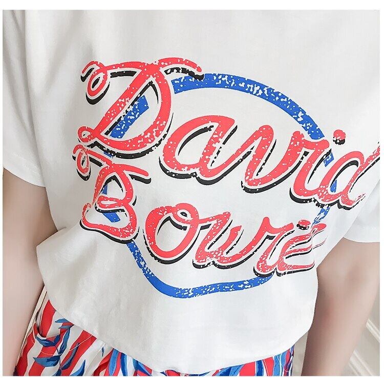 【新作】【送料無料】 滑走路の女性2ピースセットレターOネックホワイトTシャツ+ウエストシングルブレストストライププリント伸縮性ウエストスカートスーツ エラスティック AL Feminine222152628197 | Feminine