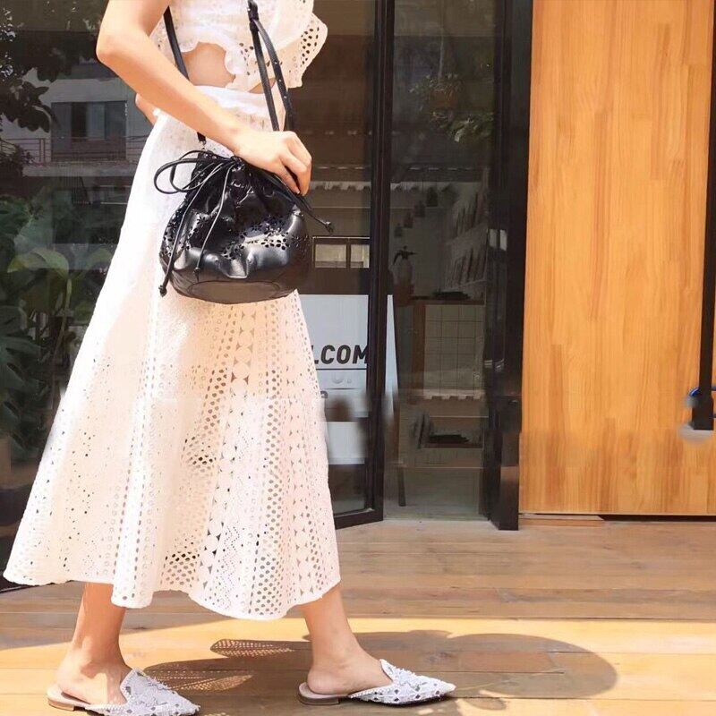 【新作】【送料無料】 2019到着品質セルフポートレートドレス滑走路夏ノースリーブホワイトロングドレスセクシーな中空ホットウエストレースドレス サマー 夏物 AL Feminine223030991102 | Feminine
