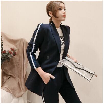 【新作】【送料無料】 SMTHMA2020春女性気質スリムシンプルダブルブレザースーツオフィスパンツ2点セットtrajesde mujer スプリング 春物 会社 学校 通勤や通学にも AL Feminine254512230307
