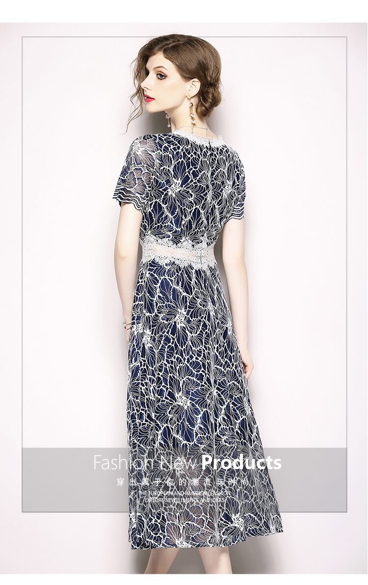 【新作】【送料無料】 SMTHMA到着サマードレス女性青赤レースドレスくり抜き半袖シックロングドレス ショート レッド ブルー ハーフスリーブ 夏物 AL Feminine281075380164 | Feminine