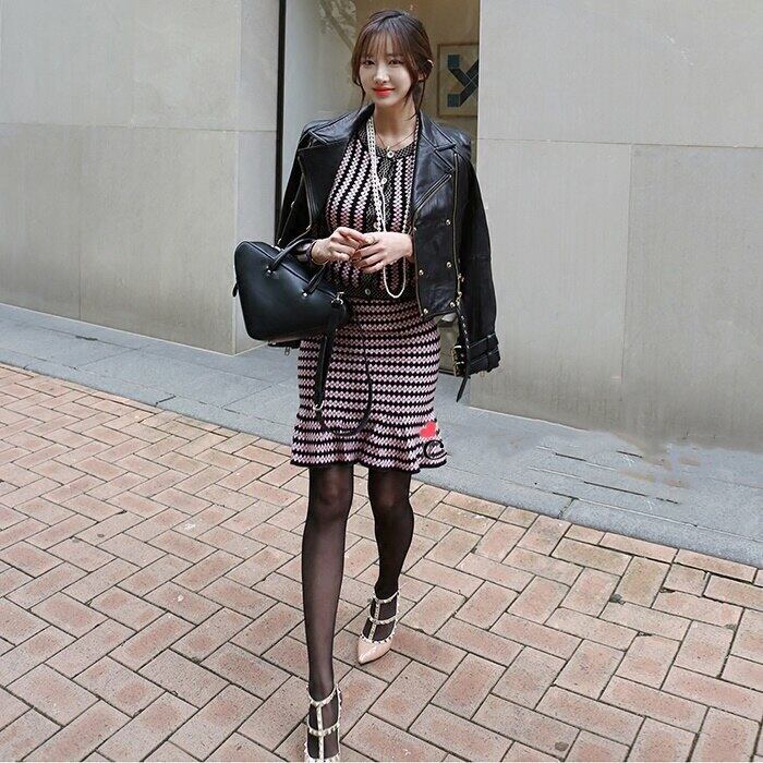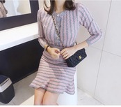 【新作】【送料無料】 2020年冬の女性用長袖シングルブレストジオメトリーカーディガンセーター+ウエストニットツーピースフィッシュテールスカートスーツ ロング ウィンター 冬物 AL Feminine234650560265 | Feminine