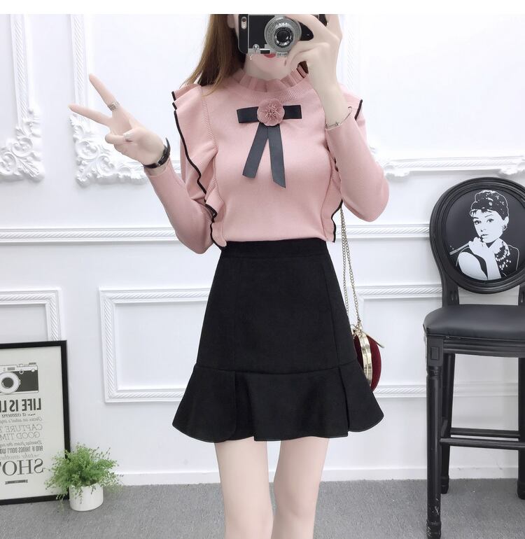 【新作】【送料無料】 SMTHMA2020秋冬女性長袖弓編みプルオーバーセーターニットスウィートフリルトップス ロング リボン 大人ガーリー キュート カジュアル オータム 秋物 ウィンター 冬物 AL Feminine264939898143 | Feminine