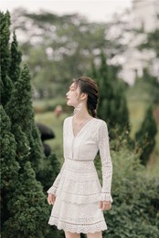 【新作】【送料無料】 estスタイリッシュな2020ランウェイドレスレディース長袖ディープVネック中空アウト豪華な刺繡黒と白のドレス ロング ホワイト ブラック 刺繍 AL Feminine292652829436 | Feminine