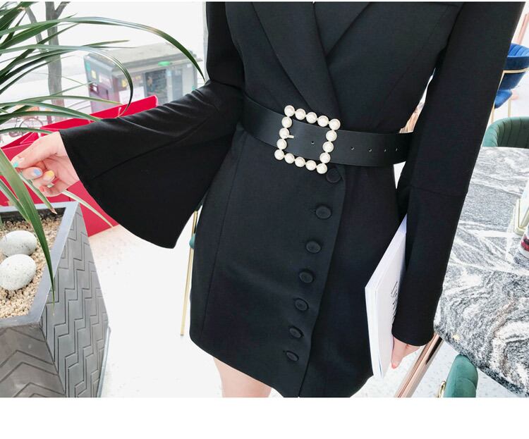 【新作】【送料無料】 ランウェイドレスレディースフレアスリーブノッチカラーシングルブレスト黒と白のドレスフリーベルト ホワイト ブラック ハーネス AL Feminine231515928820