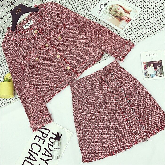 【新作】【送料無料】 SMTHMAラグジュアリーツイードジャケット2020秋冬telレディースウエストスカートセットOL オータム 秋物 ウィンター 冬物 会社 学校 通勤や通学にも AL Feminine228816241379 | Feminine