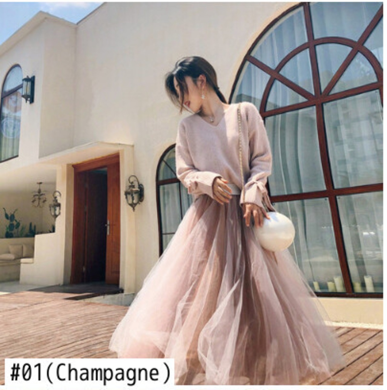 【新作】【送料無料】 上質な冬の女性用Vネック長袖ルーズニットセーター+伸縮性ウエストガーゼスカートツーピーススカートスーツ ロング エラスティック ウィンター 冬物 AL Feminine264713786712 | Feminine
