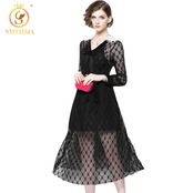 【新作】【送料無料】 SMTHMAレースドレスワークスリムVネックセクシーくり抜かれた黒のロングドレス女性ヴィンテージシックなドレス ブラック ビンテージ AL Feminine278426180180 | Feminine