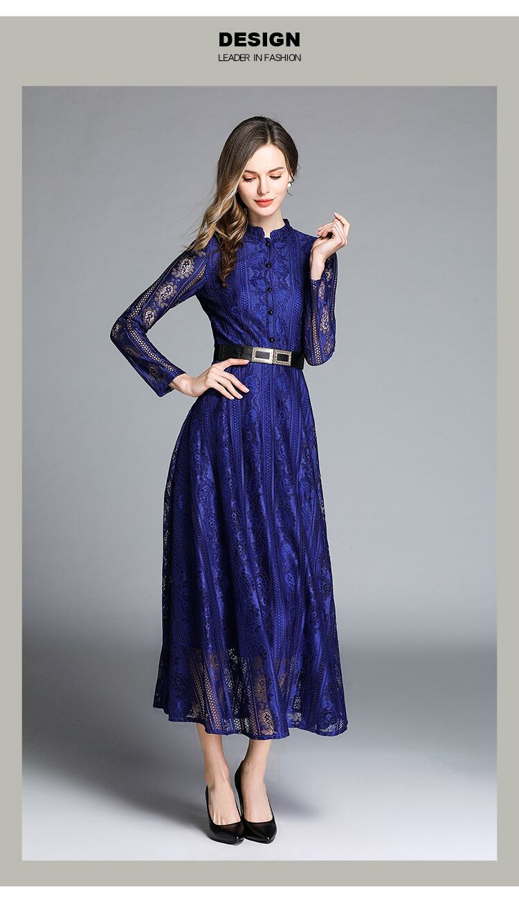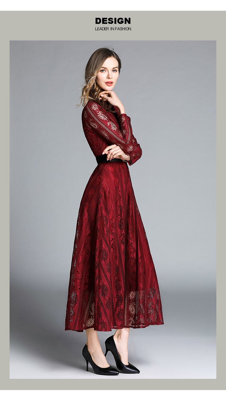 【新作】【送料無料】 SMTHMAレディースレースドレス2019秋の長袖プラスサイズのドレス滑走路の女性のパーティードレス ロング 大きめサイズ オータム 秋物 AL Feminine286433085053 | Feminine