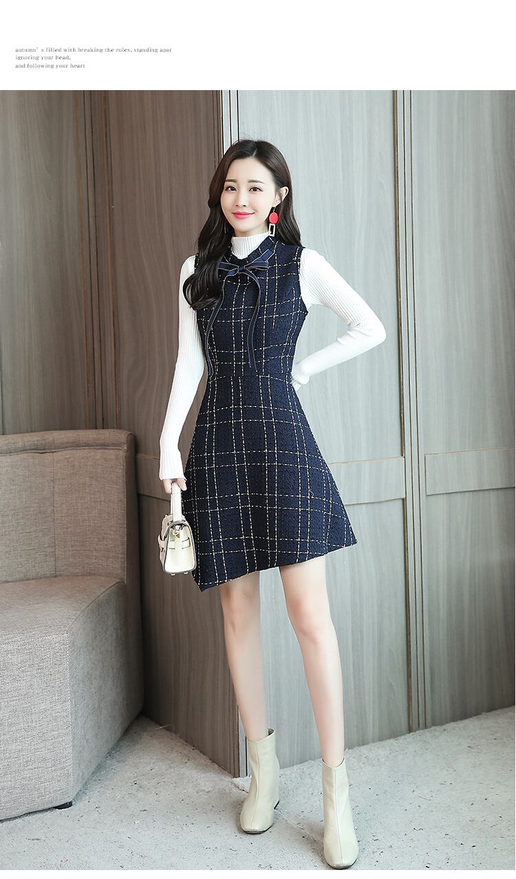 【新作】【送料無料】 2020冬の滑走路ウールツイードドレスレディースノースリーブTelチェック柄ボウベストドレス+白いセーター2点セット ホワイト リボン ウィンター 冬物 AL Feminine27079884081 | Feminine