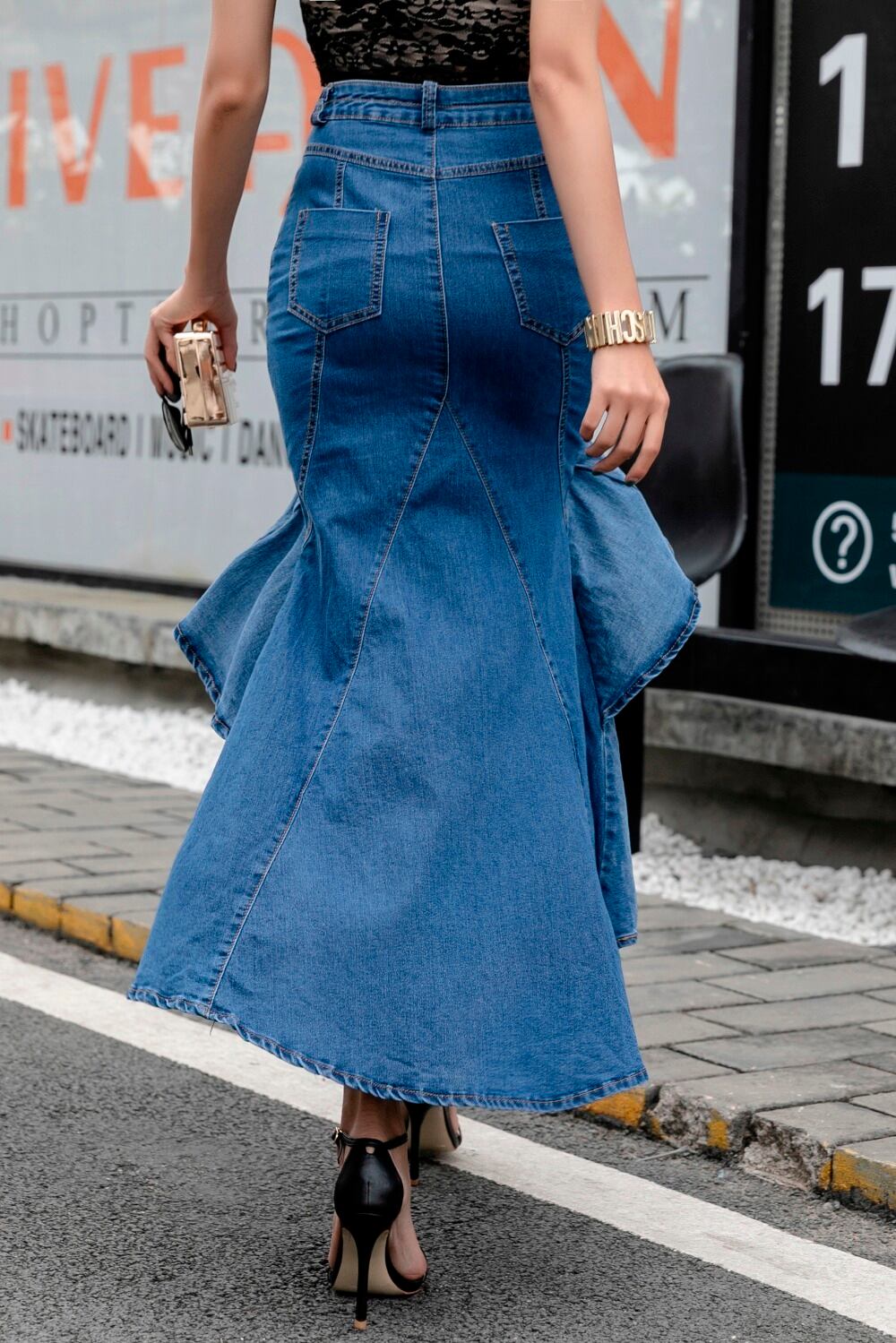 【新作】【送料無料】 ヴィンテージフリルサマースカートレディース2020ウエストグラデーション非対称ジーンズスカートデニムマーメイドスカート 夏物 ビンテージ AL Feminine25027128397 | Feminine