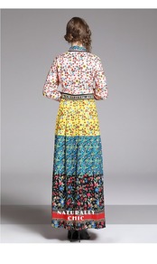 【新作】【送料無料】 2019ランウェイドレス春の女性ターンダウンカラー長袖プリントホリデースリムプリーツドレス ロング スプリング 春物 AL Feminine284932866224