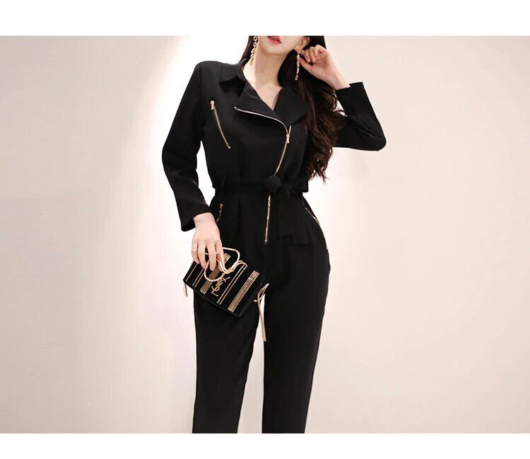 【新作】【送料無料】 SMTHMA2019到着ブラックジャンプスーツノッチカラーハイウエストルーズカジュアルレトロファッションジャンプスーツ ハイウェスト AL Feminine227978808632 | Feminine