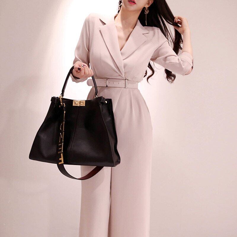 【新作】【送料無料】 SMTHMA2019春女性オフィス作業服ジャンプスーツ長袖ワイドレッグロンパースベルト付き ロング スプリング 春物 ハーネス ワイドパンツ 会社 学校 通勤や通学にも AL Feminine251747911761 | Feminine