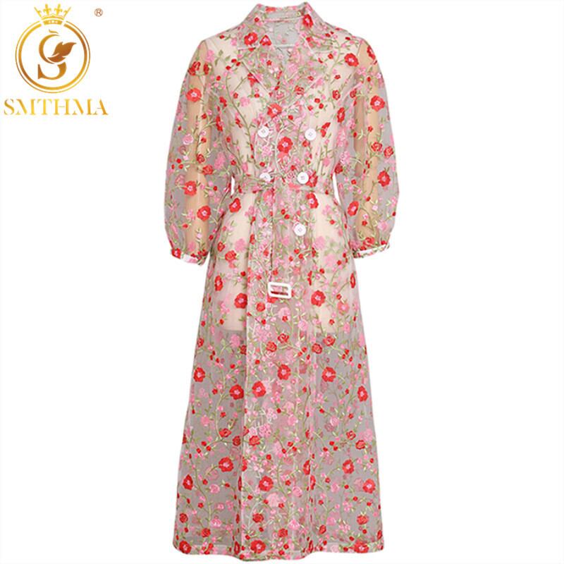 【新作】【送料無料】 品質の豪華な滑走路レーストレンチコート女性秋のノッチ付き襟花刺繡ロングカーディガン女性の服2019 刺繍 オータム 秋物 フラワーデザイン AL Feminine228438666703 | Feminine