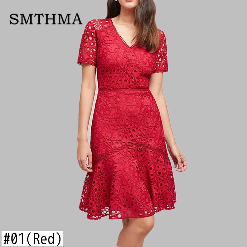 【新作】【送料無料】 SMTHMA2020サマーレースパッチワーク赤いドレス女性セクシーなVネックワークパーティースリムドレスヴィンテージVestidos レッド 夏物 ビンテージ AL Feminine271587001879 | Feminine