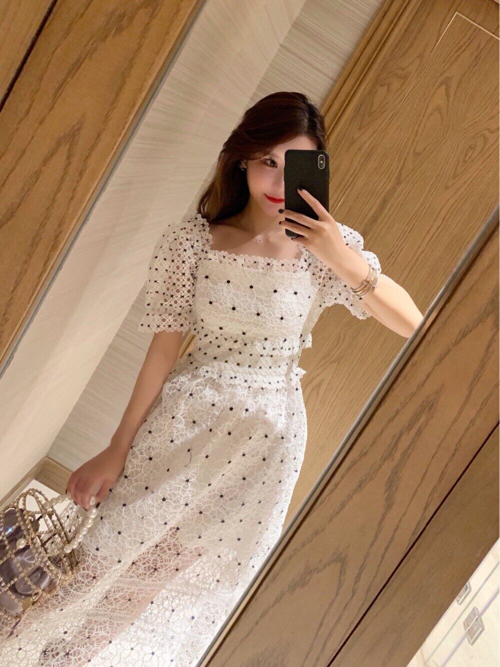 【新作】【送料無料】 SMTHMAセルフポートレートドレス2019女性セクシーオフショルダーロングドレスシックな刺繡ドットレースサマードレス 刺繍 夏物 AL Feminine279996999779 | Feminine